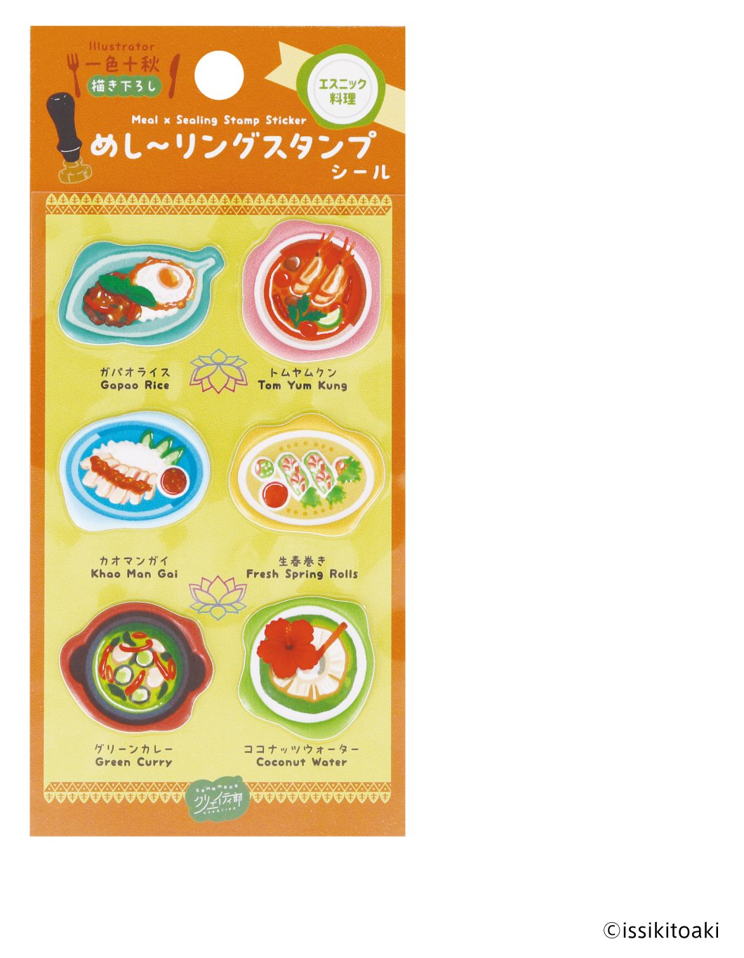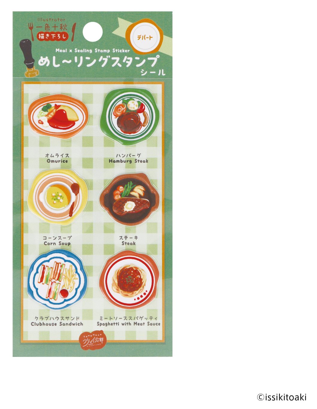 「めし~リングスタンプシール」は、人気イラストレーター・一色十秋が描く、世界の多彩な料理を、シーリングスタンプ風の“ひと皿”に見立てたシールです。
