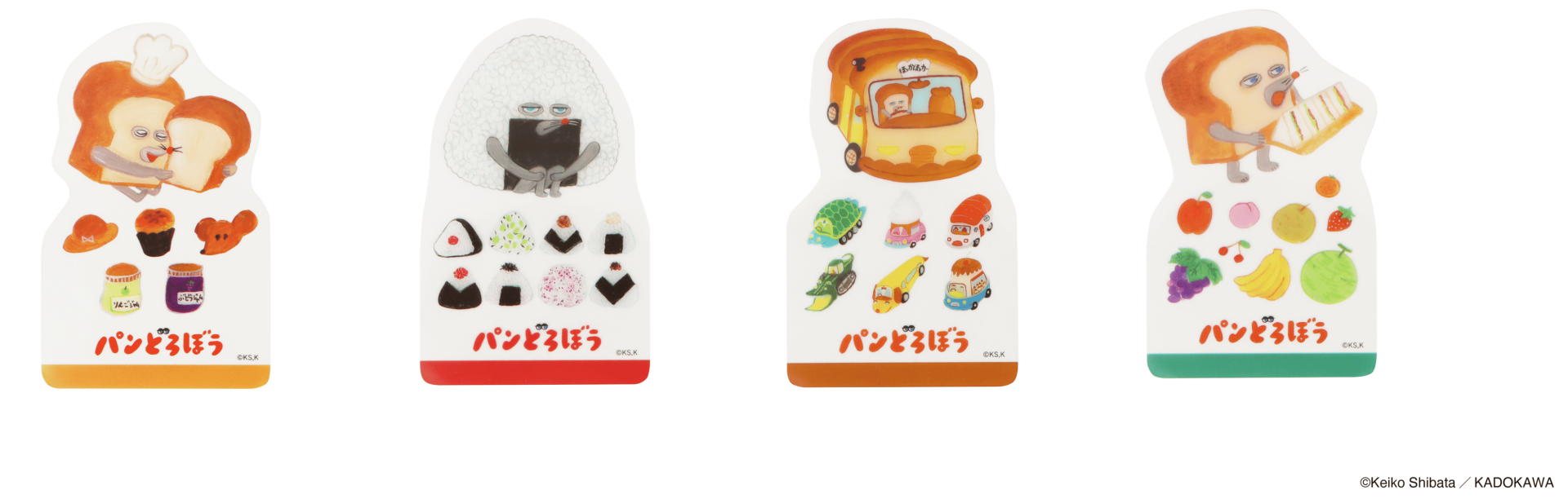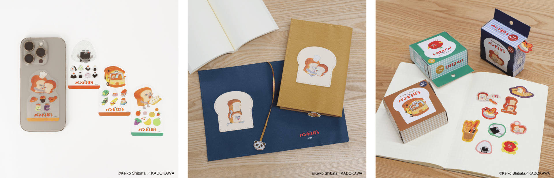 本商品は、大人気ユーモア絵本「パンどろぼう」シリーズのうち、『パンどろぼうとほっかほっカー』『パンどろぼうとりんごかめん』のイラストを中心にデザインしたステーショナリーシリーズです。スマホケースにも挟めるブックマーカーや、作品にちなんだワンポイントつきのブックカバーやペンケース、人気の高いボックスロールステッカーなど、全7種のアイテムをラインナップしました。「パンどろぼう」ならではの鮮やかな色調は活かしつつ、大人でも日常使いしやすい落ち着いたカラーリングに仕上げています。