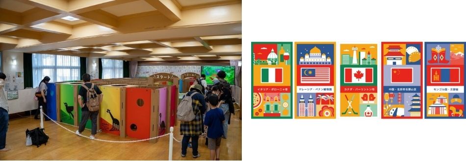 昨年、好評だった段ボールの迷路を使ったデジタルスタンプラリー「てくてく段ボール迷路」は、子どもたちに国際交流をより身近に感じてもらえるように、板橋区の海外姉妹友好都市5か所のイラストを配した“板橋オリジナルバージョン”で登場します。