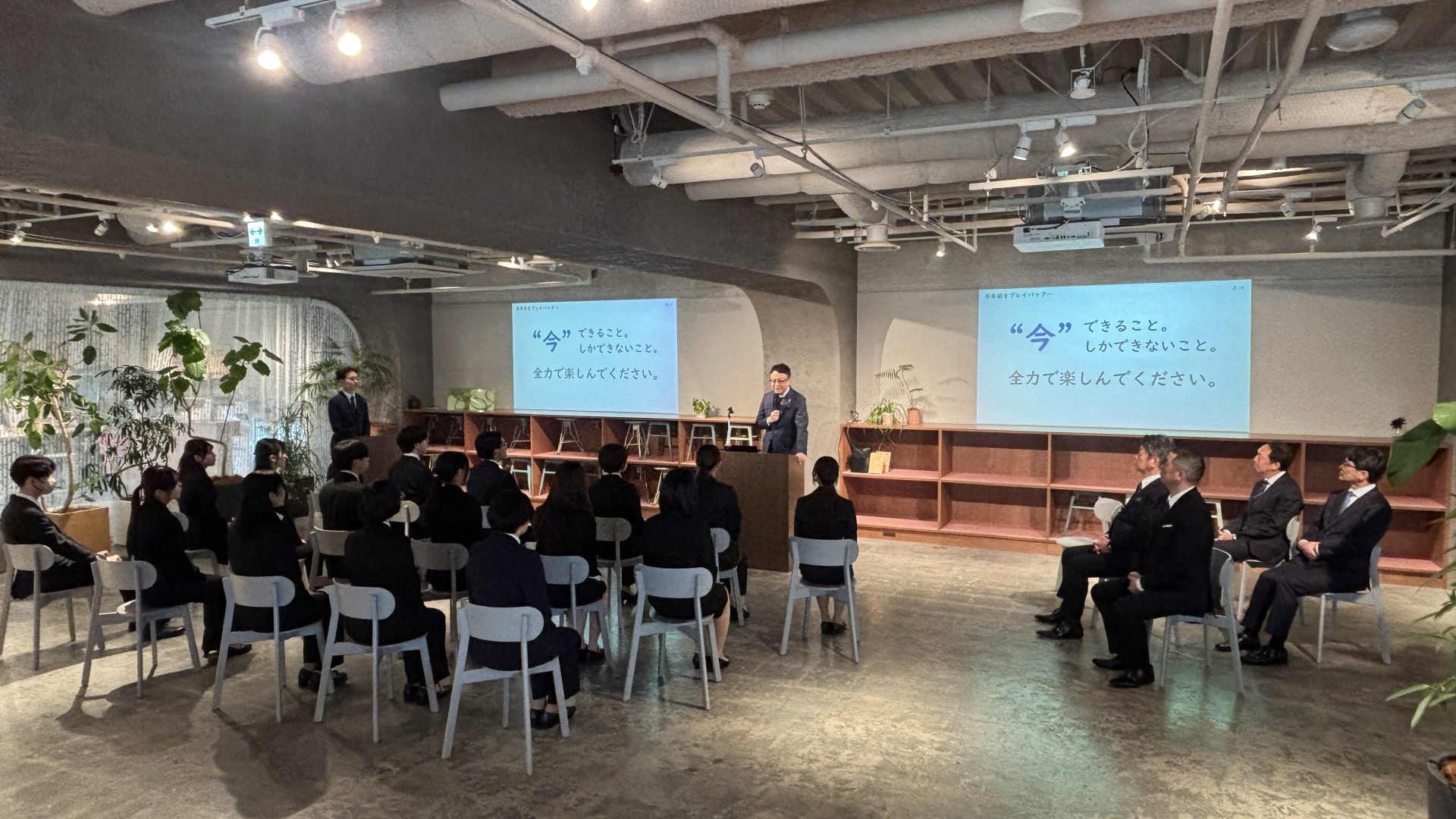 今日、この瞬間から、皆さんは「ともに働く仲間」です。一緒に、楽しんで未来をつくっていきましょう。
