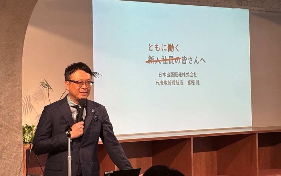 新入社員代表からは、「本には効率だけでは測れない価値があります。その価値を届け続ける一員として、変化の時代にふさわしい新しい形を模索しながらも、本と人との出会いを支え続ける人でありたいと思います。学ぶ姿勢を忘れず、柔軟さと挑戦心を持って、新しい可能性を切り開く力となれるよう精進します」という固い決意が述べられました。