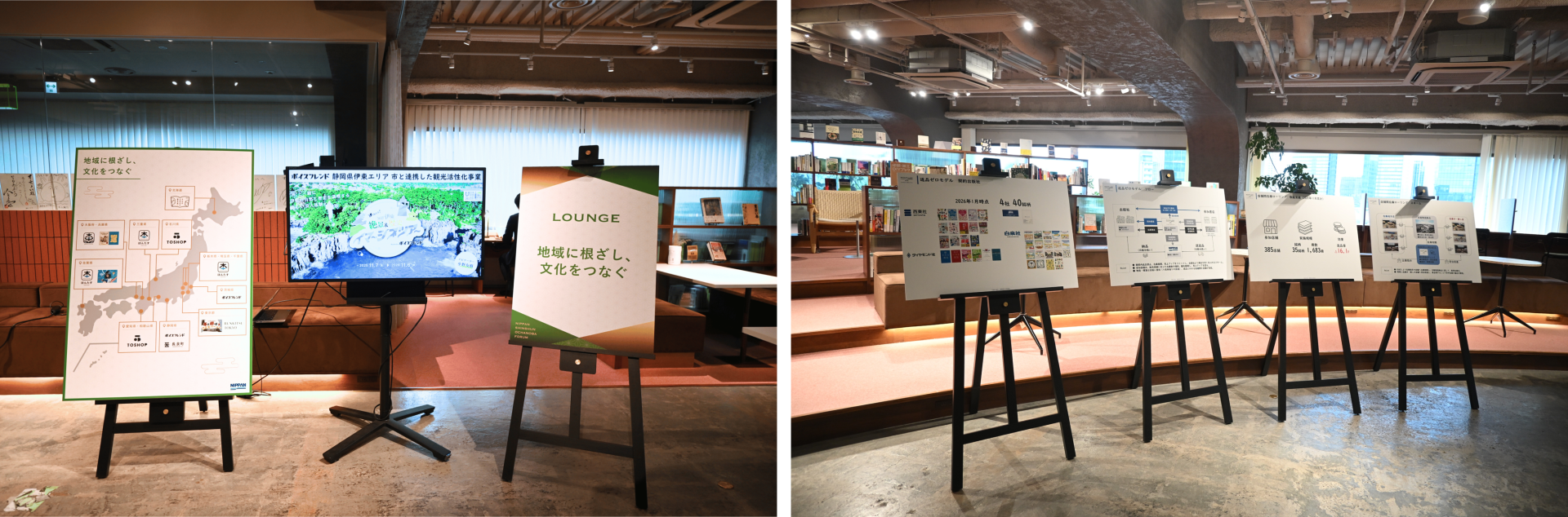 また、ラウンジでは、「地域に根ざし、文化をつなぐ」をテーマとした日販の各地域とのお取組みや、ブックセラーズ&カンパニー株式会社についても、パネル展示にてご紹介しました。