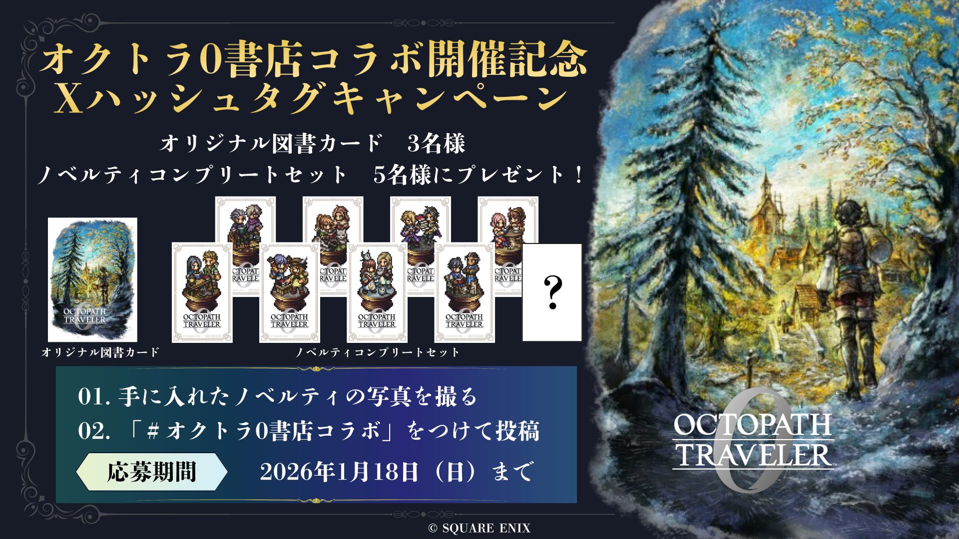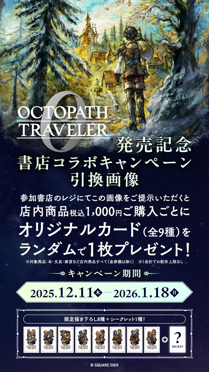 日本出版販売株式会社(代表取締役社長:富樫 建、略称:日販)は、株式会社スクウェア・エニックス(代表取締役社長:桐生 隆司)が手掛けるロールプレイングゲーム(以下RPG)『オクトパストラベラー0』の発売を記念して、2025年12月11日(木)より全国91書店にて、書店コラボキャンペーンを実施します。