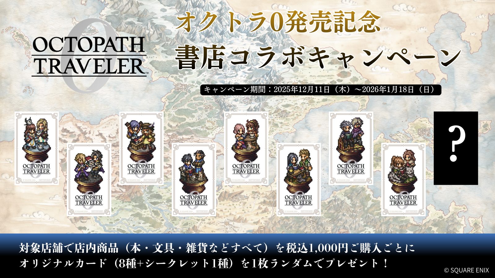 株式会社スクウェア・エニックスは、全世界 500 万本(※)を突破した RPG「オクトパストラベラー」シリーズの最新作『オクトパストラベラー0』を、2025 年 12 月 4 日(木)に発売します。日販はこれを記念し、『オクトパストラベラー0』との書店コラボキャンペーンを実施いたします。※全世界出荷本数とダウンロード数の合計